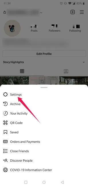 1. في تطبيق Instagram الخاص بك ، انتقل إلى الإعدادات.